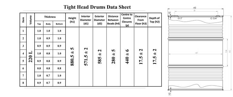 سعة البرميل حسب طلب العميل، مثل براميل 220 لتر و230 لتر